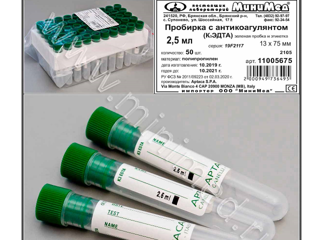 Предназначена для взятия проб крови и её гематологического исследования. Пробирка снабжена этикеткой для занесения информации о проведенном анализе. На этикетке имеется контрольная отметка уровня забираемого образца крови. Нестерильная. Антикоагулянт нанесен на стенки пробирки в виде жидкого аэрозоля в точном соответствии с объемом крови, на который пробирки расчитаны.