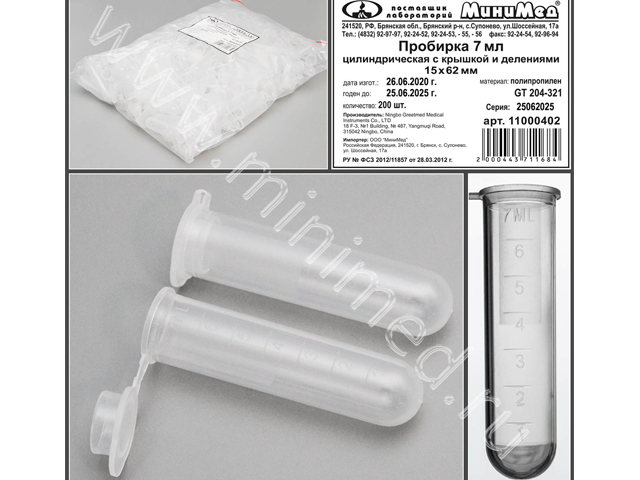 Пробирка цилиндрическая с защелкивающейся крышкой предназначена для хранения, транспортировки биологических и иных жидкостей, проведения различных биохимических реакций. Изготавливается из полипропилена. Имеется рельефная градуировка и окошко для записи информации. Возможно автоклавирование при температуре +121° С.