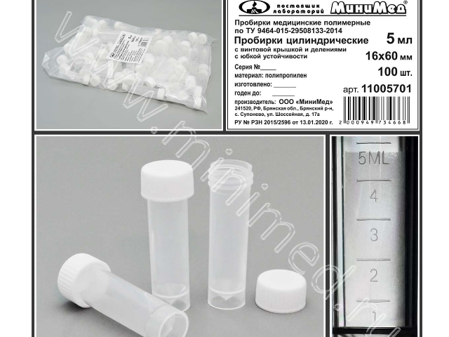 Предназначена для взятия, хранения и транспортировки образцов биоматериалов в целях дальнейших диагностических исследований в клинических лабораториях. Изготовлена из полипропилена, герметично укупоривается винтовой полипропиленовой крышкой, с рельефной градуировкой, матовым окном для записи и юбкой устойчивости. Относительное центробежное ускорение не более 6000 g.