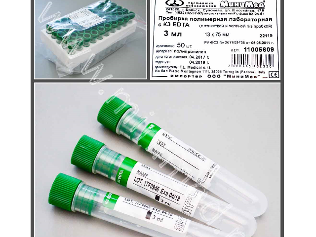 Предназначена для взятия проб крови и её гематологического исследования. Пробирка снабжена этикеткой для занесения информации о проведенном анализе. На этикетке имеется контрольная отметка уровня забираемого образца крови. Нестерильная. Антикоагулянт нанесен на стенки пробирки в виде жидкого аэрозоля в точном соответствии с объемом крови, на который пробирки расчитаны.