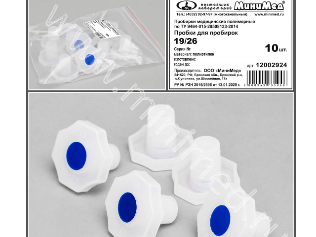 Пробка коническая 19/26,п/эт, уп.10шт, ТУ 9464-015-29508133-2014
