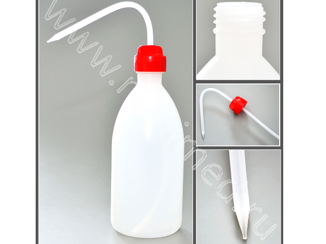 Предназначена для ополаскивания лабораторной посуды и принадлежностей струей жидкости. Промывалка состоит из бутылки и трубки. Возможно выдвижение трубки на необходимый уровень. Тип струи - жесткая.