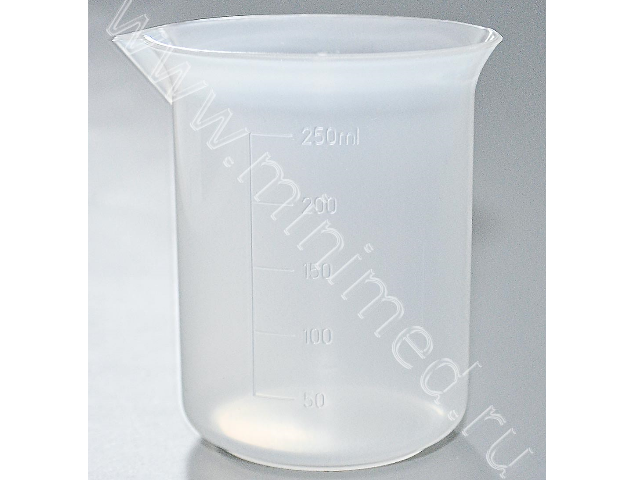 Предназначен для отмеривания ориентировочного объема веществ и иных процедур с нелетучими жидкостями. Изготовлен из специального особо прозрачного полипропилена, выдерживает автоклавирование при температуре +121°С. Стакан с носиком и рельефной градуировкой.