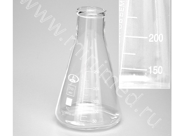 Колба коническая (Эрленмейера) разработана для фильтрования, выпаривания, перегонки, разгонки, дистилляции и синтеза в лабораторных условиях.