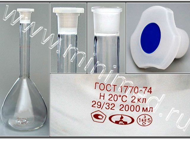 Колба 2а-2000-2 мерная, с пробкой, ТУ 9464-013-52876351-2014, ГОСТ 1770-74, уп.3 шт