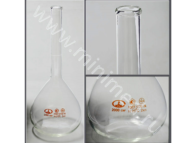 Колба 1-2000-2 мерная, ТУ 9464-013-52876351-2014, ГОСТ 1770-74, уп.3шт