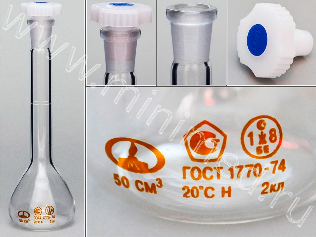Колба 2а-50-2 мерная, с пробкой, ТУ 9464-013-52876351-2014, ГОСТ 1770-74