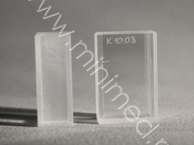 Кюветы кварцевые для спектрофотометрии изготовлены из кварцевого стекла марки КУ–1 по технологии УФ–склеивания. Химически устойчивы к действию кислот (кроме плавиковой кислоты) и разбавленных щелочей. Разработаны для приборов серии СФ, Минигем, Specord при работе в спектральном диапазоне от 260 до 2500 нм.
