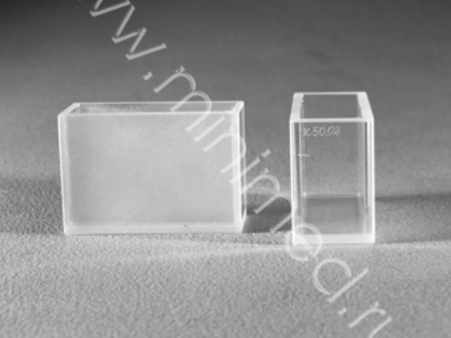 Кюветы кварцевые для спектрофотометрии изготовлены из кварцевого стекла марки КУ–1 по технологии УФ–склеивания. Химически устойчивы к действию кислот (кроме плавиковой кислоты) и разбавленных щелочей. Разработаны для приборов серии СФ, Минигем, Specord при работе в спектральном диапазоне от 260 до 2500 нм.