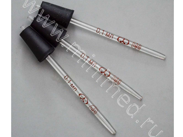Пипетки вместимости к дозатору Флоринского 0,1+0,01 мл, тип I, с пробкой, ТУ 9464-013-52876351-2014, уп. 20 шт