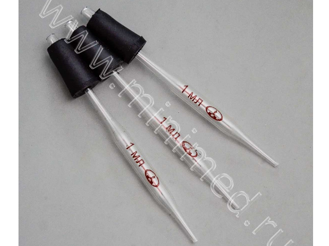 Пипетки вместимости к дозатору Флоринского 1,0+0,1 мл, тип II, с пробкой, ТУ 9464-013-52876351-2014, уп.20 шт