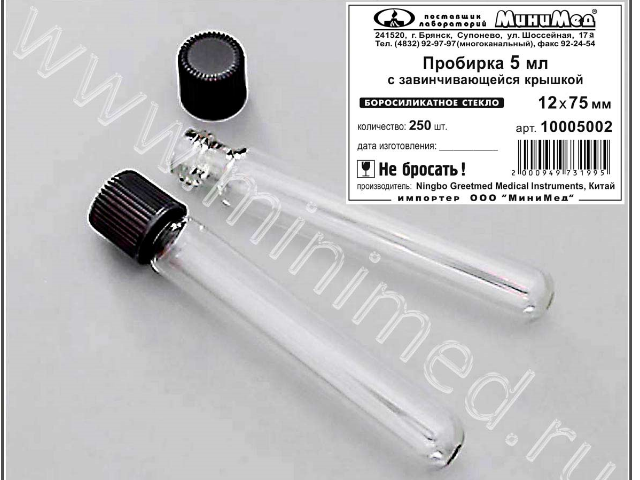 Пробирка с завинчивающейся крышкой разработана для химических, биологических и микробиологических лабораторных процедур. Изготовлена из боросиликатного стекла, круглодонная, крышка из бакелита выдерживает t до 300 град.