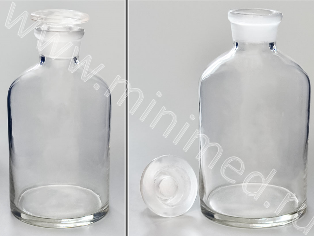 Склянка лабораторная 500 мл из светлого стекла с узкой горловиной и притертой пробкой кор. 48 шт,36 шт