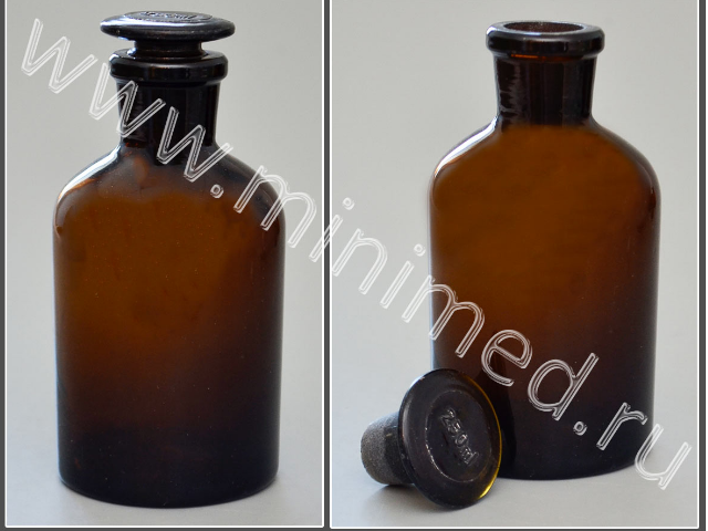 Склянка лабораторная 250 мл из темного стекла с узкой горловиной и притертой пробкой уп.48шт, 72шт.