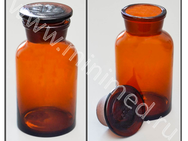 Склянка лабораторная 500 мл из темного стекла с широкой горловиной и притертой пробкой