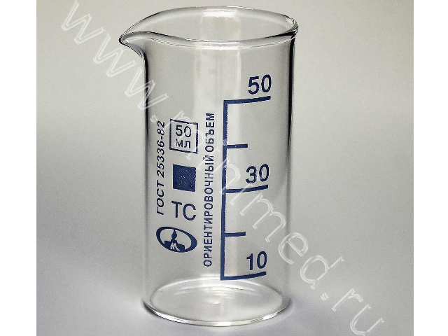Стакан В-1-50 ТУ 9464-019-29508133-2015 с делением, ТС, уп. 20шт