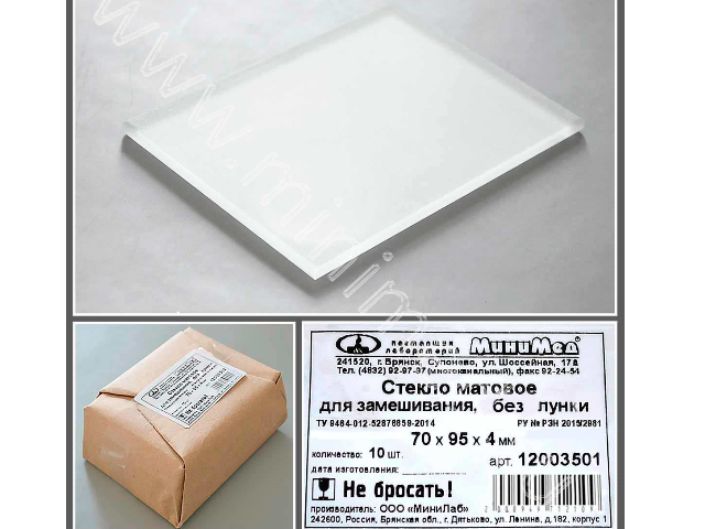 Стекло для микропрепаратов по ТУ 9464-012-52876859-2014, матовое для замешивания без лунки, 70*95*4 мм, уп.10/120 шт