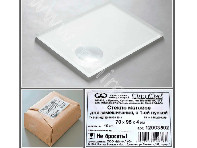 Стекло для микропрепаратов по ТУ 9464-012-52876859-2014, матовое для замешивания, с 1-й лункой, 70*95*4 мм, уп.10 шт.