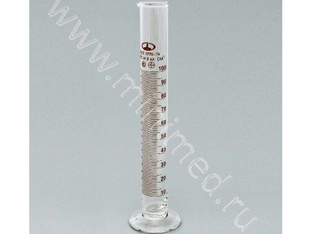 Цилиндр 1-100-2 с нос. и стекл. осн., ТУ 9464-013-52876351-2014, ГОСТ 1770-74, уп.6 шт