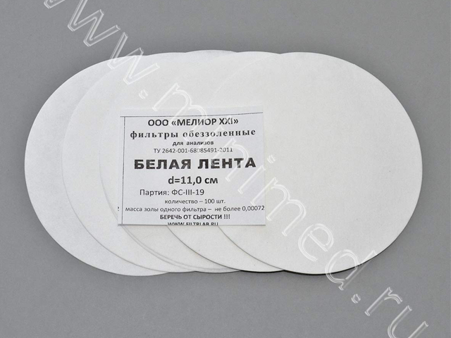 Фильтры обеззоленные "Белая лента" d 110мм, уп. 100шт