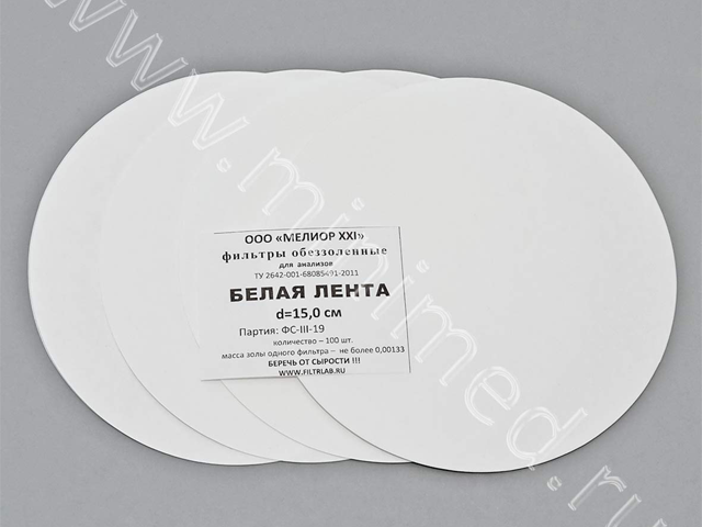 Фильтры обеззоленные "Белая лента" d 150мм, уп.100 шт