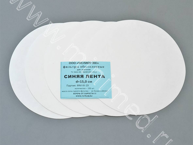 Фильтры обеззоленные "Синяя лента" d 150мм, уп. 100 шт
