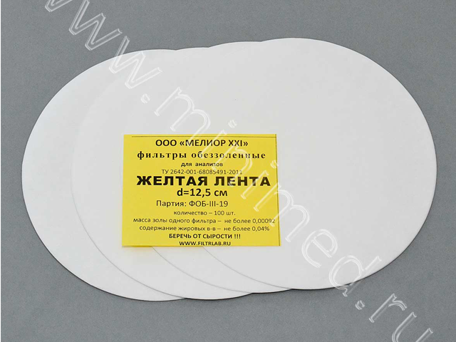 Фильтры обеззоленные, желтая лента d 125, уп. 100 шт