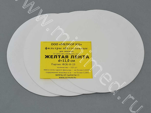 Фильтры обеззоленные, желтая лента d 110, уп. 100 шт