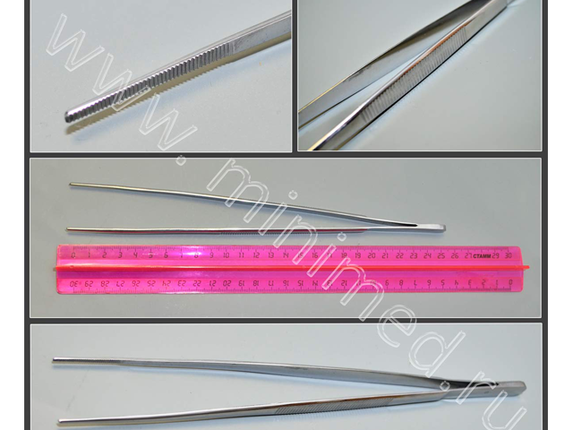 Предназначен для захвата и удержания различных тканей. Каждый пинцет состоит из двух стальных пластин (браншей), обладающих пружинящими свойствами. Одни концы пластин спаяны (или сварены) между собой. Противоположные концы, расходятся клиновидно, называются лапками или губками. С наружной стороны пластин в средней части находятся опорные пластины для пальцев, имеющие продольные мелкие рифления или насечки. Пинцет имеет на рабочей (внутренняя) поверхности поперечные насечки, что позволяет удерживать ткани более надежно.