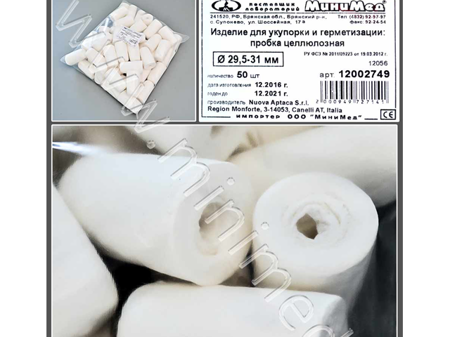 Изделие для укупорки и герметизации: пробка целлюлозная 29,5-31мм, уп50шт/.750шт.