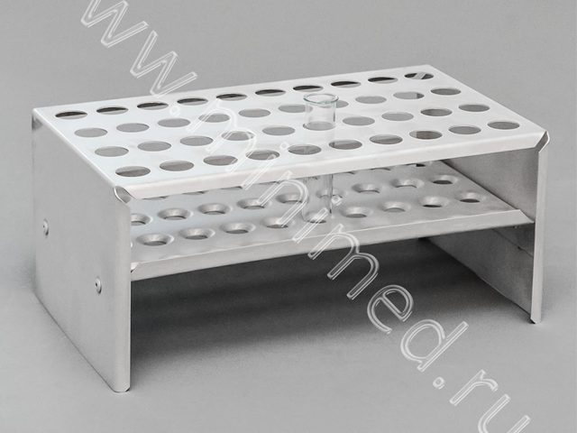 Штатив изготовлен из алюминия, что позволяет стерилизовать их при любом температурном режиме; данный материал обеспечивает легкость и долговечность. Может использоваться в водяных банях. Штатив имеет индивидуальную упаковку. Предназначен для хранения пробирок.