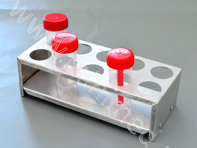 Штатив изготовлен из алюминия, что позволяет стерилизовать их при любом температурном режиме; данный материал обеспечивает легкость и долговечность. Может использоваться в водяных банях. Штатив имеет индивидуальную упаковку. Предназначен для хранения контейнеров объемом до 30 мл.