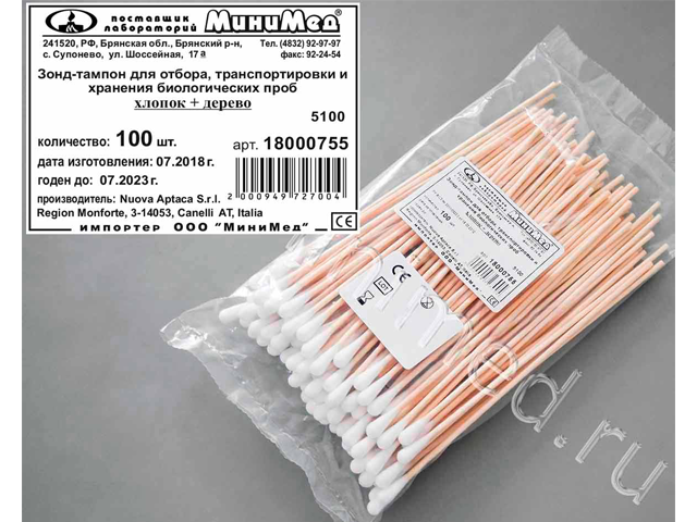 Предназначен для взятия и хранения образцов биологического материала с целью безопасной транспортировки в лабораторию для проведения анализа. Удобен для взятия смывов, в том числе санитарных. Нестерильный.